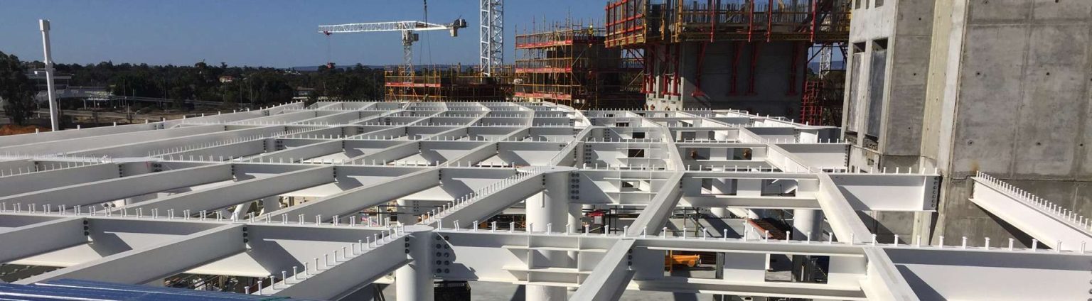 Shear stud connectors for steel deck composite floors in commercial and residential buildings. Essential for steel frame construction and composite beams.